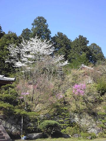 2012年04月12日,13日の弘仁寺です。桜の花が満開を迎えています。ボケの花も盛りです。